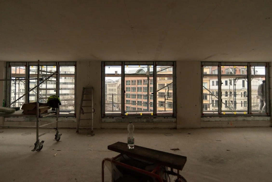 Im historischen Berliner Stadtzentrum, unweit des Gendarmenmarkts und eingebettet in das denkmalgeschützte Ensemble des Hausvogteiplatzes, schreitet die Revitalisierung des Bestandsgebäudes Hausvogteiplatz 13 planmäßig voran. Im Zuge der umfassenden Refurbishment-Maßnahmen wurde nun ein weiterer sichtbarer Meilenstein erreicht: Der Einbau der ersten neuen, größeren und energieeffizienten Fenster im 5. OG hat begonnen.